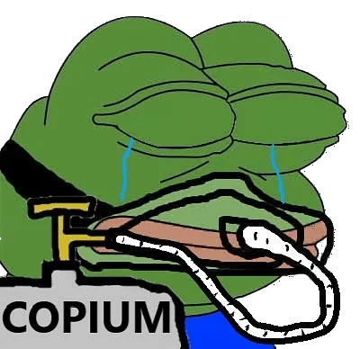 Копиум - (от англ. cope — справляться и opium — опиум) — это интернет-сленг, обозначающий вымышленное вещество или психологический механизм, помогающий людям игнорировать неприятную реальность и справляться с разочарованием, утешая себя ложными надеждами или нереалистичными объяснениями.