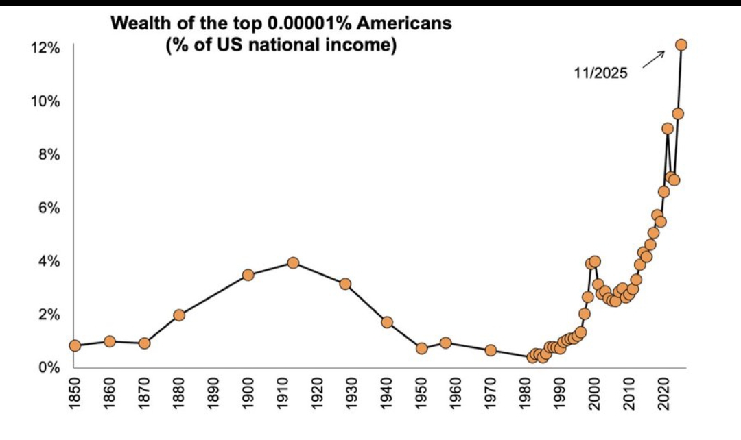 В 1913 году состояние Джона Рокфеллера равнялось 3% ВВП США, а в 2025 состояние Илона Маска не дотягивает и 1,5%. И это самые богатые. Оказывается они беднеют.