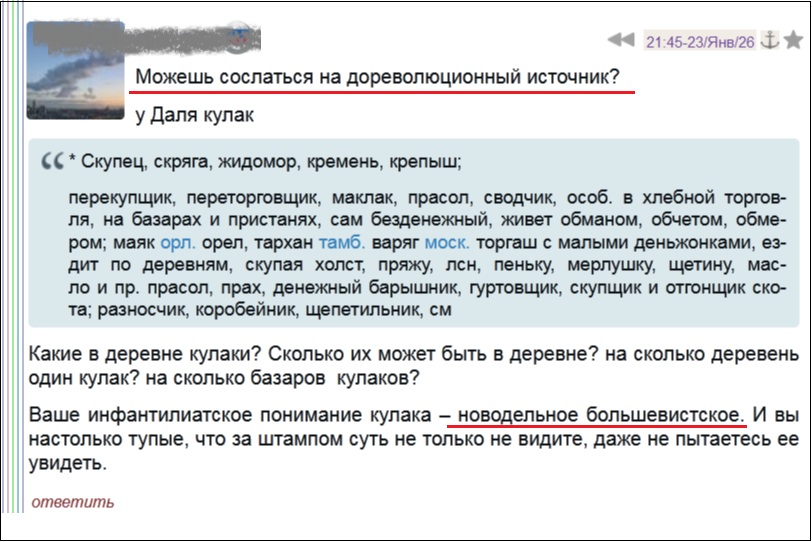 Ниже - отрывок из  книги "Ростовщичество - кулачество", которая проясняет ответ на вопросы, заданные вчера в обсуждении (см. скрин ).