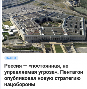 Управляемость российской угрозы Пентагон рассматривает, как возможность в любой момент надавить на Россию и она обязательно - по его мнению - уступит, отойдет в сторону, не посмеет и вообще капитулирует. Все зависит исключительно от доброй воли самих США - захотят - прихлопнут Россию, как комара, - захотят - разрешат еще пожужжать какое-то время.