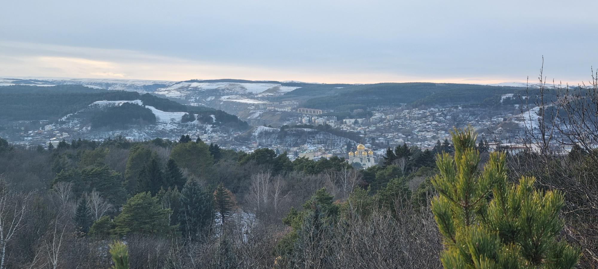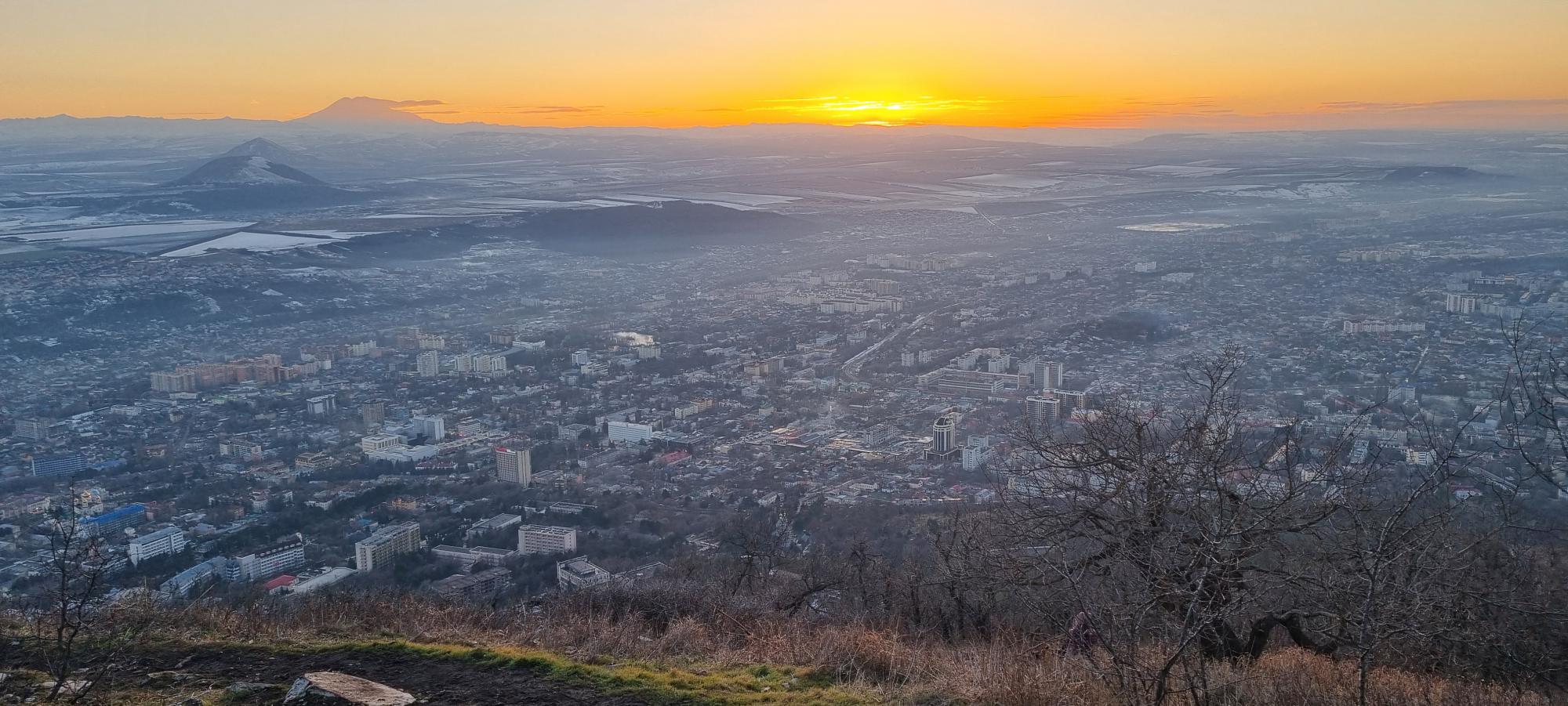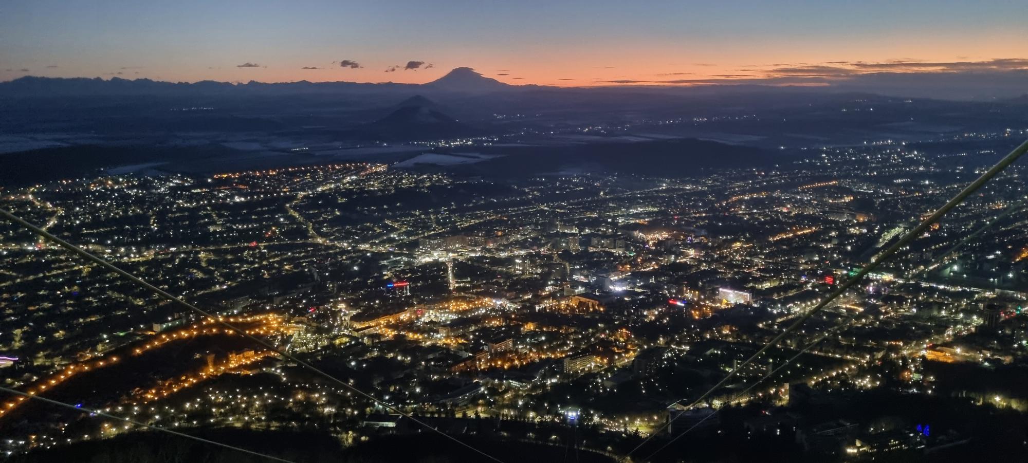 Экскурсия в Пятигорск чуть было не сорвалась. Только мы выехали из позитивного, солнечного Кисловодска, как сразу въехали в сплошной туман. Промозгло и ничего не видно. Но нам повезло и достаточно быстро прояснилось. Провал. Лермонтов. Термы. Но главное Машук! Мы не большие любители очередей, точнее большие нелюбители, но тут отстояли 50 минут на канатку. Виды – обалденные! Мы специально не подгадывали под закат, но застали. А потом и ночной Пятигорск.