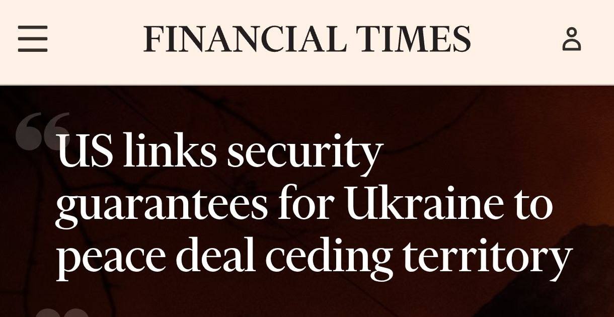 Financial Times: Администрация Трампа дала понять Украине, что гарантии безопасности со стороны США будут предоставлены только в том случае, если Киев сначала согласится на мирное соглашение, которое, вероятно, будет предполагать уступку Донбасса России, по словам восьми человек, знакомых с ходом переговоров.
