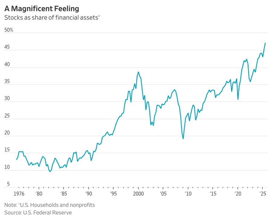 Доля акций в финансовых активах домохозяйств США достигла очередного максимума