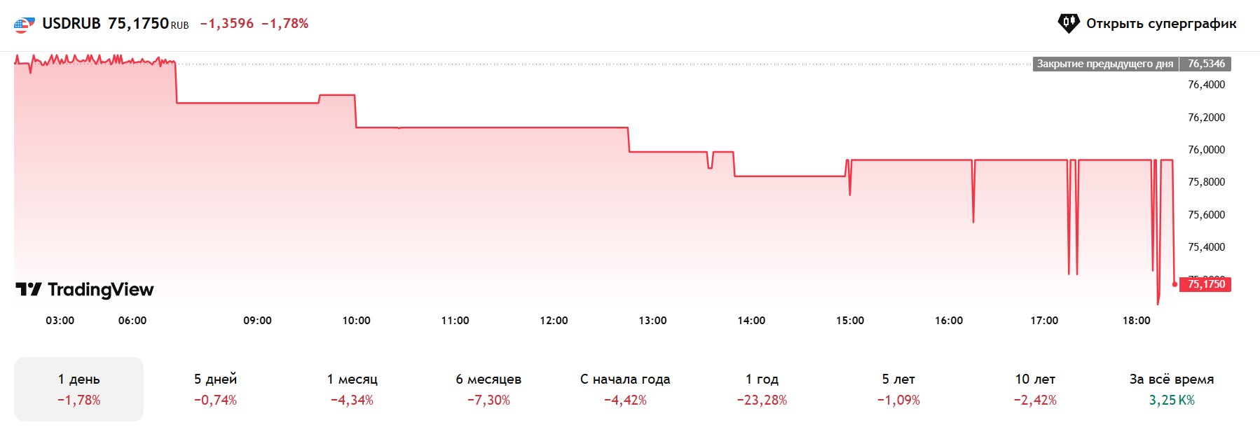 Считается, что там график результирующий, который на основании всеобщих торгов складывается. И пока у них хотя бы на 75,15 строго не встанет - у нас вероятнее всего будет на месте топтаться. Объемы у них там не очень большие и при желании можно их шапками закидать, но... думаю, не будет этого никто делать, не в этот раз. Серьезного повода для этого не видать.