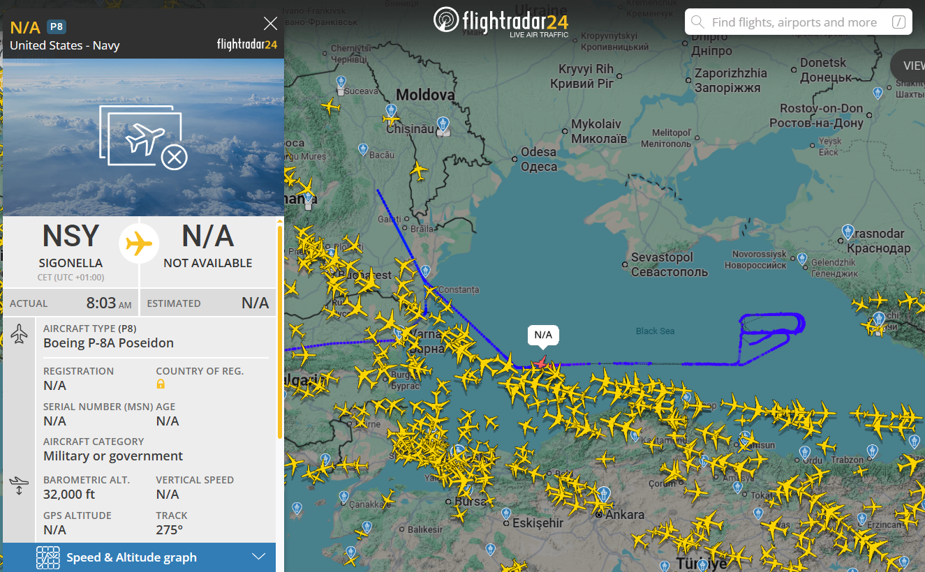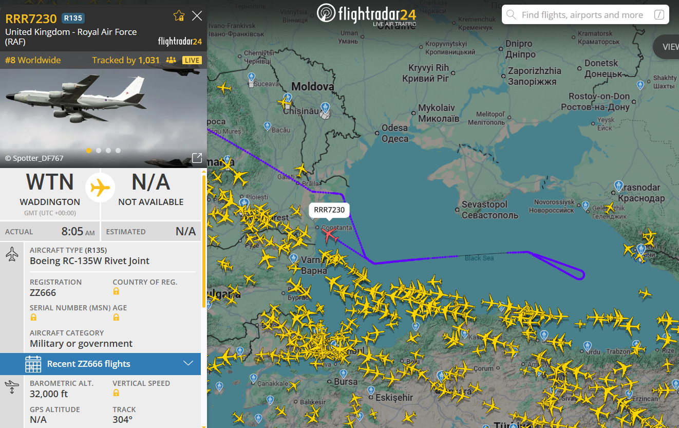 МОСКВА, 30 января. /ТАСС/. Стратегический разведывательный самолет ВВС Великобритании Boeing RC-135W Rivet Joint и разведывательный противолодочный самолет ВМС США Boeing P-8A Poseidon находятся в воздушном пространстве над Черным морем.