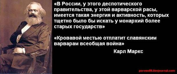 Россия — "варварская империя, угрожающая цивилизации... Русские — азиатская орда". (Памфлеты 1830-х).