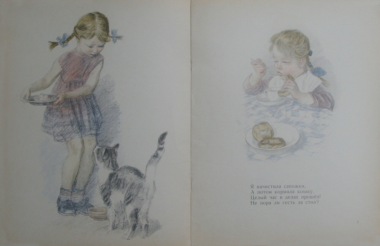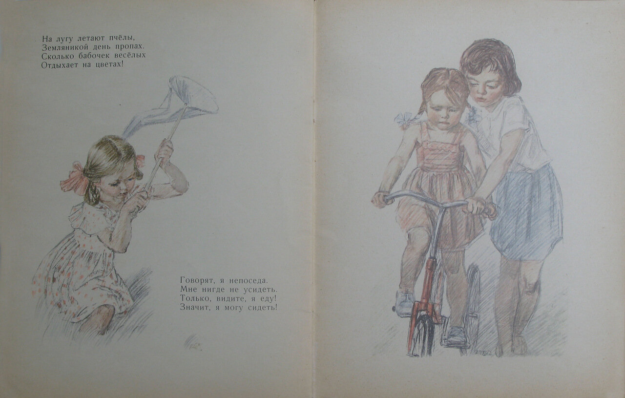 Вот-вот! Просто требования к художникам долгое время были довольно высокими, в том числе умение рисовать с натуры. Издательства учитывали, что родительское поколение отдавало все силы работе, а дедушки, бабушки были малограмотными. То есть, детей надо было приохотить к чтению без помощи взрослых. Реалистичный рисунок помогал понять содержание.