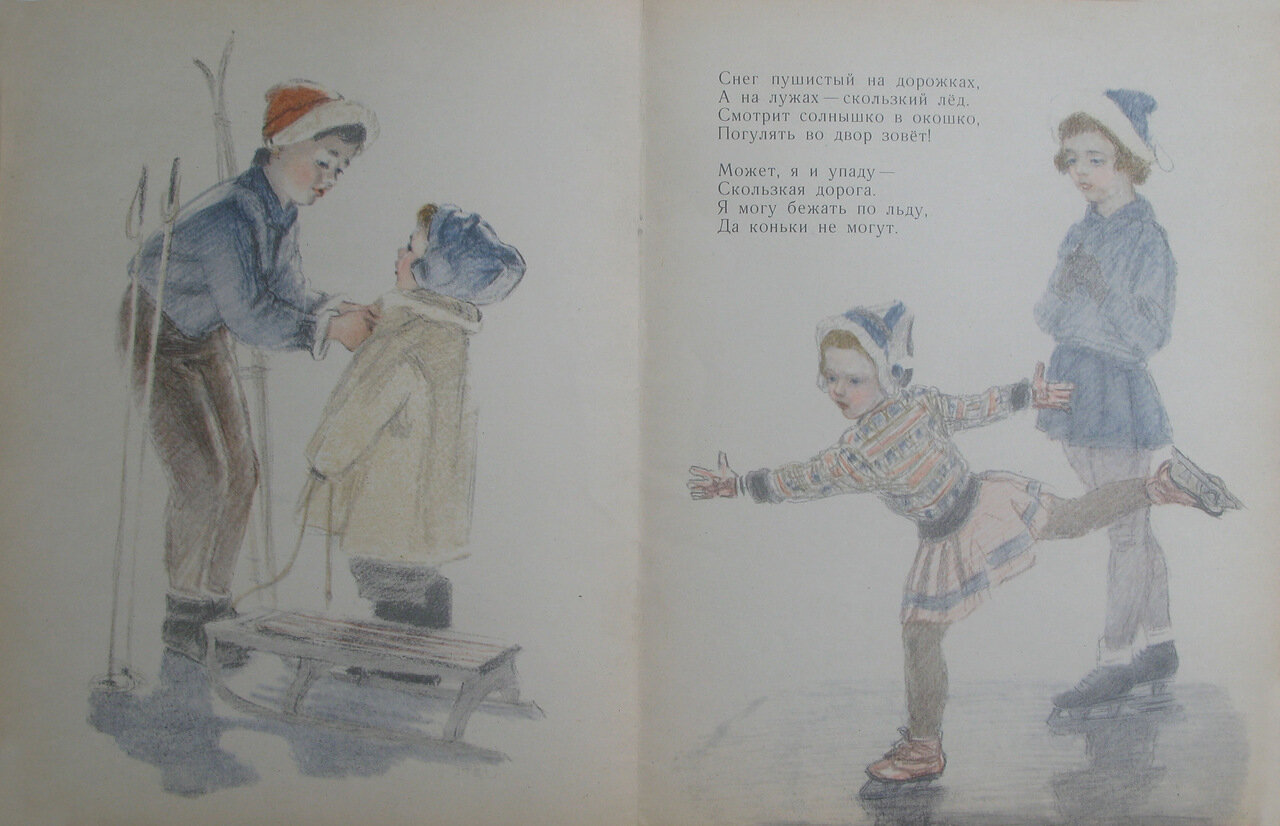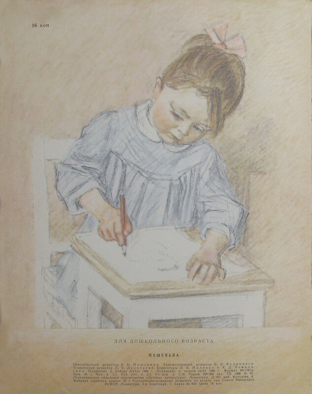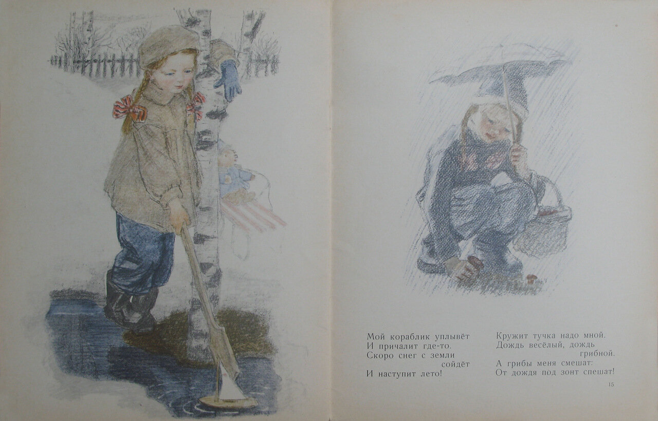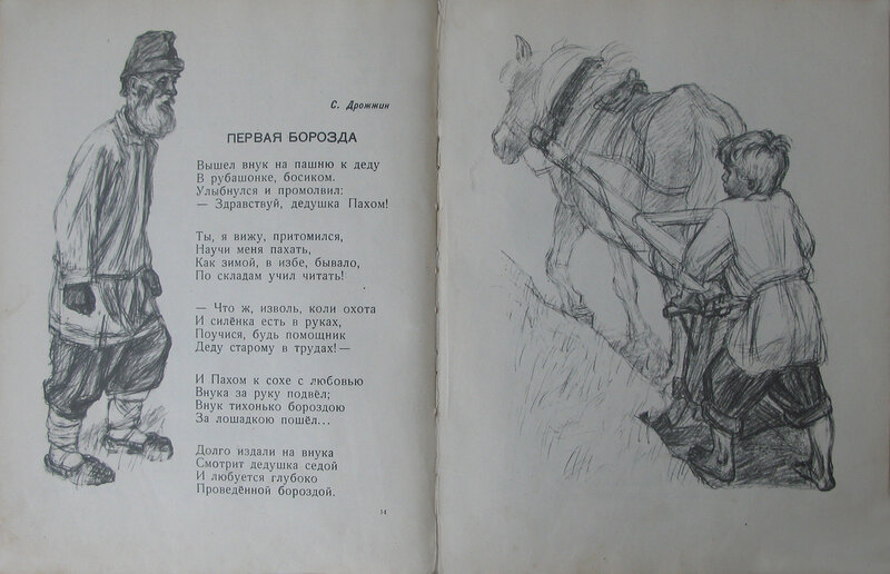 Стихи совсем простенькие, как и почти все тексты, которые иллюстрировал Пахомов. А рисовал он самых разных детей, крестьянских и городских, реальных и "сказочных". Задумчивых и весёлых, проказливых и серьезных.