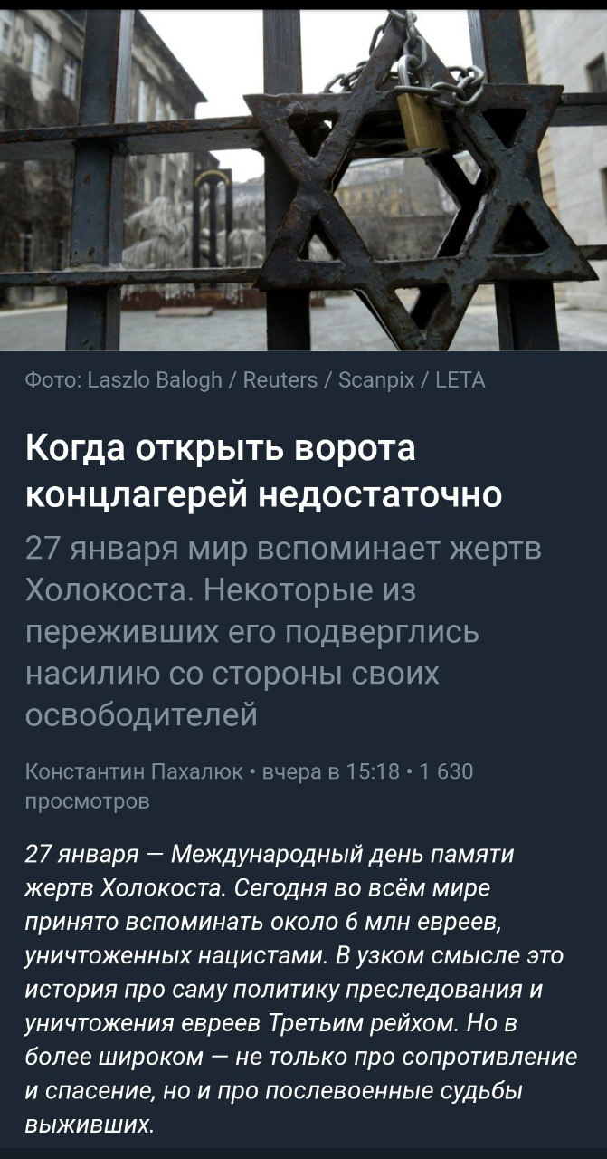 Прочитал , аж чуть не зарыдал . Очень перспективное направление научной мысли - главную опасность еврейским узникам концлагеря несли советские освободители , как и главную опасность девочкам еврейских гетто несли партизаны , к которым они бежали .. Серьёзно вперед историческая наука продвинулась . Это научный прорыв .. Это же какая широта , сколько можно трудов на эту написать , ещё и бабла рубануть . А почему эти прозревают в Израиле ? Ну это жен очевидно шекель не пахнет ..