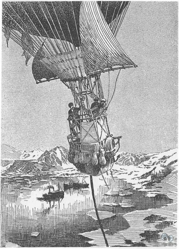 При старте летом 1897 года аэростат практически сразу потерял два из трёх гайдропов, набрал большую высоту и превратился в неуправляемый воздушный шар. Ветер, который нёс его к Северному полюсу, несколько раз менял направление. Способность удерживать водород оказалась хуже расчётной, и шар ударился о лёд. 40 часов его волочило, пока движение окончательно прекратилось.