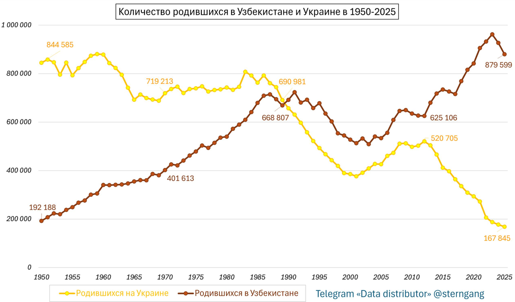 Перед СВО на Украине жило 42 млн человек, и Украины была на 30 месте в мире по населению. За два прошедших года Украина, по данным Википедии, потеряла 9 млн человек.