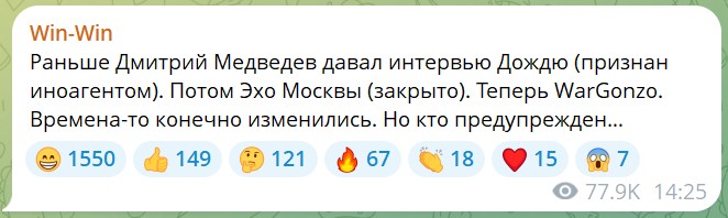 https://er.ru/activity/news/intervyu-zampredsedatelya-soveta-bezopasnosti-rf-dmitriya-medvedeva-agentstvam-tass-reuters-proektu-wargonzo