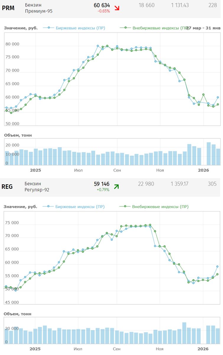 АИ-95 – 60 634 рубля за тонну