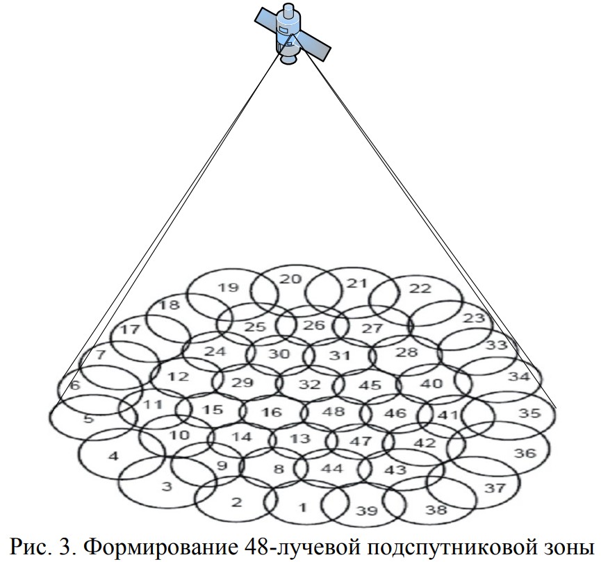 Количество лучей, формируемых КА возрастет – 30 лучей, работающих на прием (из них 2 луча для управления КА и передачи ТМИ) и 32 луча, работающих на передачу (из них 2 для управления КА и передачи ТМИ). Это количество лучей будет делится на фидерные (между КА и ШС) и абонентские (между КА и АТ).