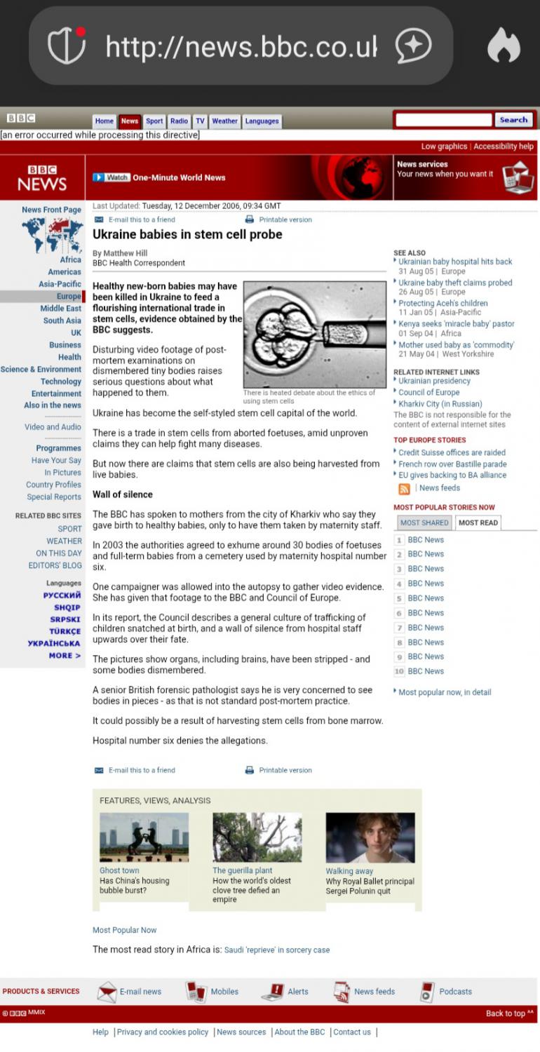 Но позвольте вам напомнить одну "ситуацию", вскрывшуюся в 2006м году, т.е. когда БиБиСи все еще не врало относительно реальной ситуации на Украине.