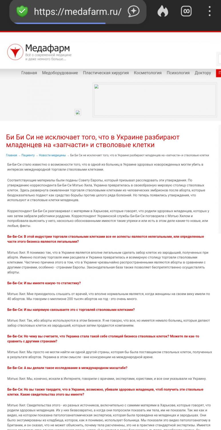 Нет ничего невероятного в том, чтобы представить, что новорожденных могут убивать из-за частей их тела, говорит Вадим Лазарев, врач, ставший активистом, который проводит кампанию за улучшение медицинской этики в Украине. Он сказал, что у него нет никаких доказательств, только слухи о том, что врачи топят младенцев в околоплодных водах, объявляют их мертворожденными и продают их тела.