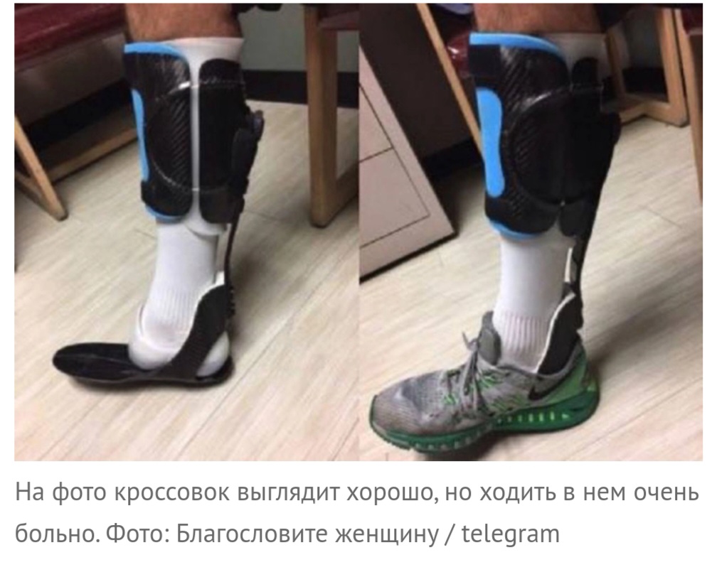 Меня спрашивают, как муж со своей пяткой учится ходить. Спойлер - плохо. Потому что когда остается одна пятка, без стопы, это вообще всегда плохо. Сейчас, спустя год, я вижу, что надо было делать реампутацию по голень, как предлагали врачи. Уже бы бегал. Не хромал бы уж точно. А сейчас он сшил на заказ башмачок (22 тыс.) и ходит в нем. Башмачок сам по себе сделан нормально, но не помещается в обувь, только в берцы на два размера больше.