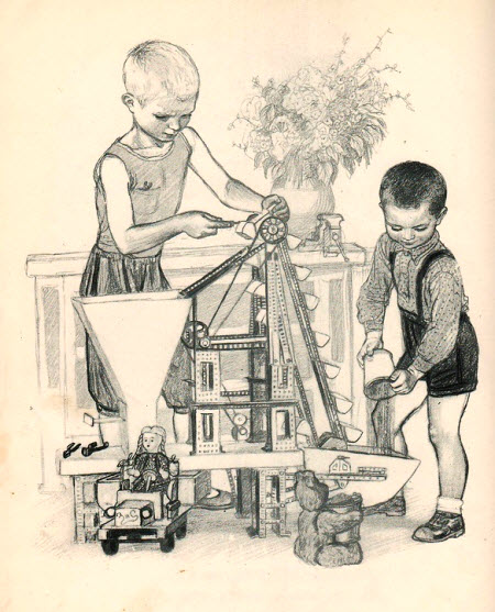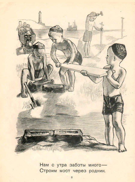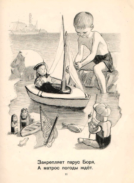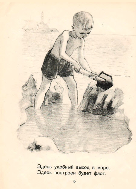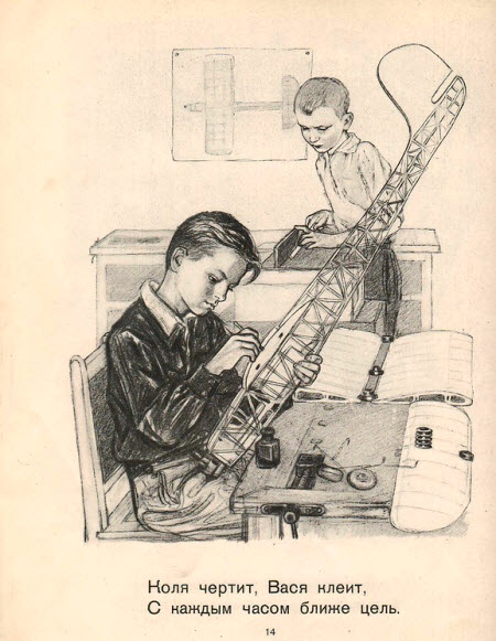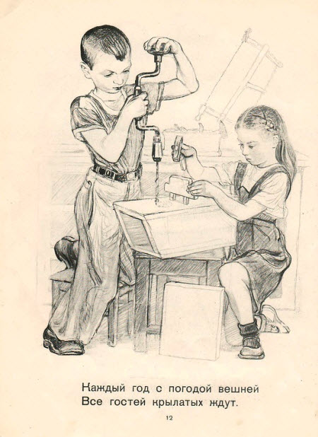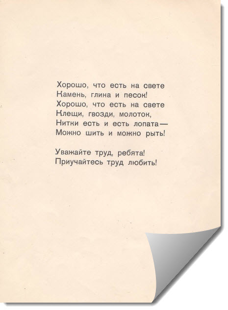 В детской литературе тридцатых-пятидесятых годов отношение к ремеслу - самое уважительное. При этом стихи и проза всегда учитывают возраст, поэтому текст не превращается в унылое нравоучение, а рисунки поясняют то, что было бы слишком долго описывать словами.