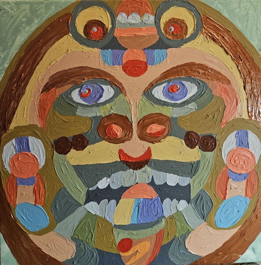 С тех пор я застряла между мирами. Пригвожденная в одной стране, не принимаемая в другой, а третья сама отдана на заклание. Не жалуюсь. Живу настоящим. Принимая и отпуская. «Сама себя ценю. Во столько, сколько стою, валютой золотою.» Бывает, не вижу выхода. Как пару дней назад. Только у меня есть Я и арт-терапия. Пока они вместе – это сила. Красками на холсте выложила свои ощущения. Моего внутреннего демона обиды. Вопреки ожиданию, смотрит на меня умиротворяюще. Давая надежду.
