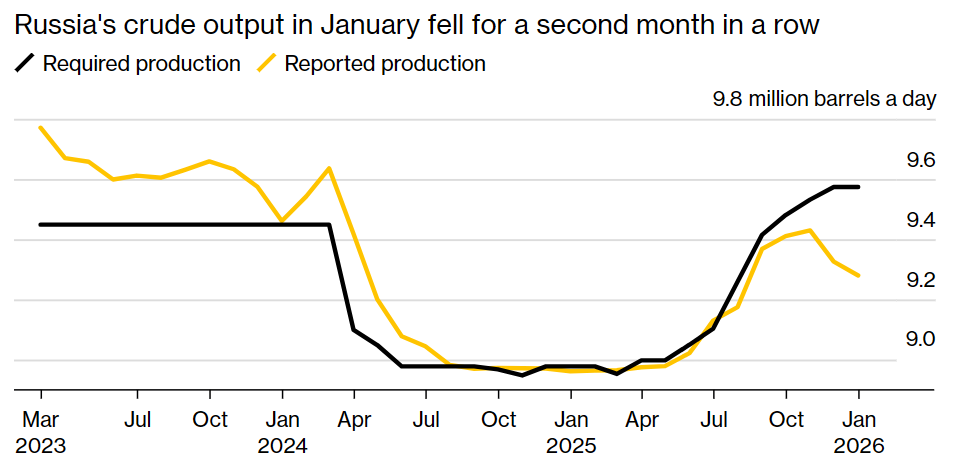 В прошлом месяце страна добывала в среднем 9,28 миллиона баррелей сырой нефти в день, по словам людей, знакомых с данными, которые попросили не называть их имен, обсуждая секретную информацию.