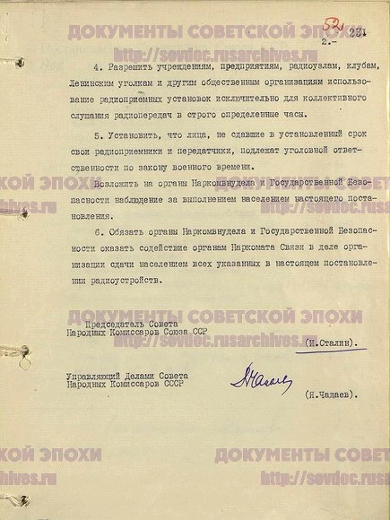 Крестьянин Егоров предположил, что всеми виной враги народа прокравшиеся в СНК, которые скрывают от Сталина правду о том, что принимаются вредительские решения об изъятии радиоприемников.