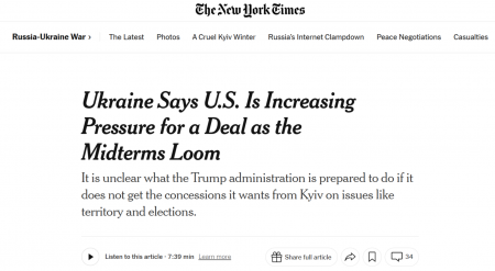 The New York Times: В то время как Украина готовится к очередному раунду мирных переговоров, который может состояться уже на следующей неделе, украинские власти заявляют, что администрация Трампа усиливает давление, требуя от них пойти на уступки России, чтобы положить конец войне к началу лета.