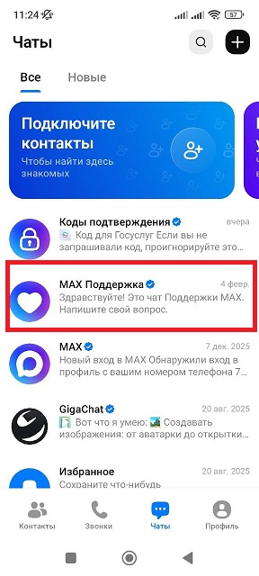 "МАХ Поддержка" уедет сама вниз при появлении более свежих сообщений.