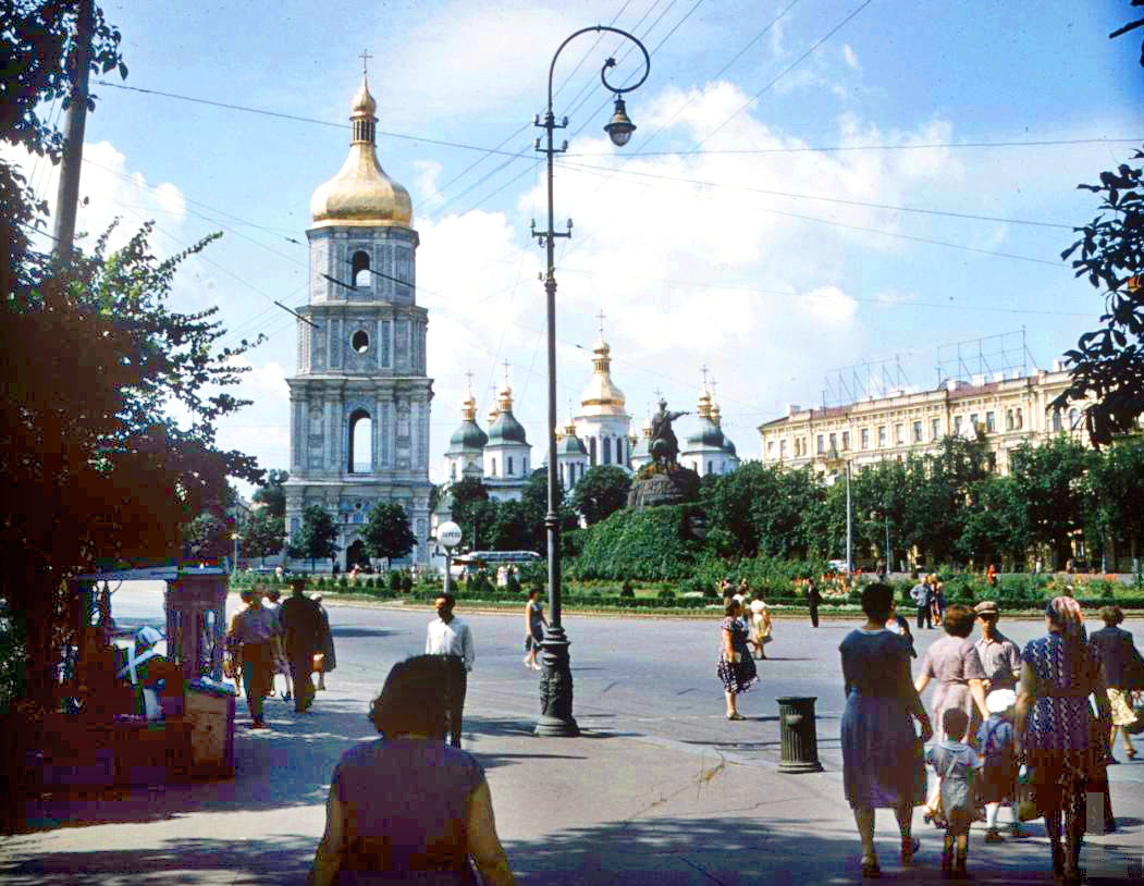 Элегантный фонарь у Софийской площади. Киев, 1955 год