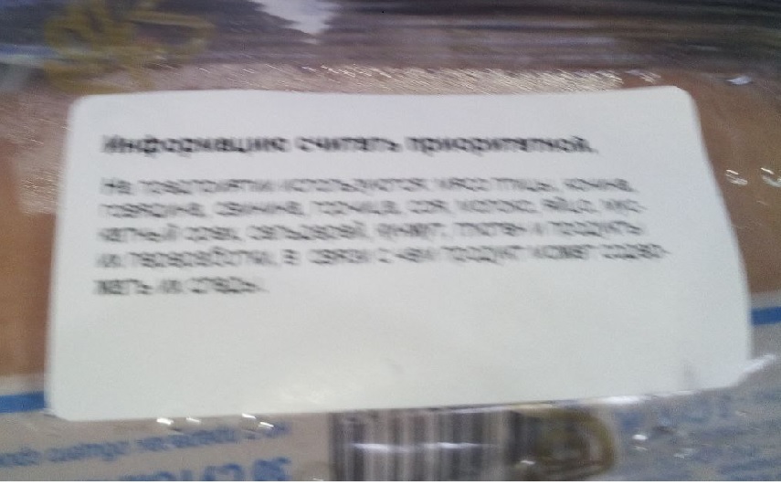 Вот беру я как-то фарш, и, стоя в очереди на кассу, решила буквы знакомые поискать на этикетке, читаю состав: