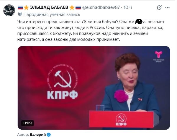 Ну она только про себя говорит. Очевидно, свои интересы представляет Айда к бабуле за солениями и чаем с клубничным вареньем. Чай она тоже сама выращивает? Ну, так он с 2023-го года всего на 300 р/кг подорожал