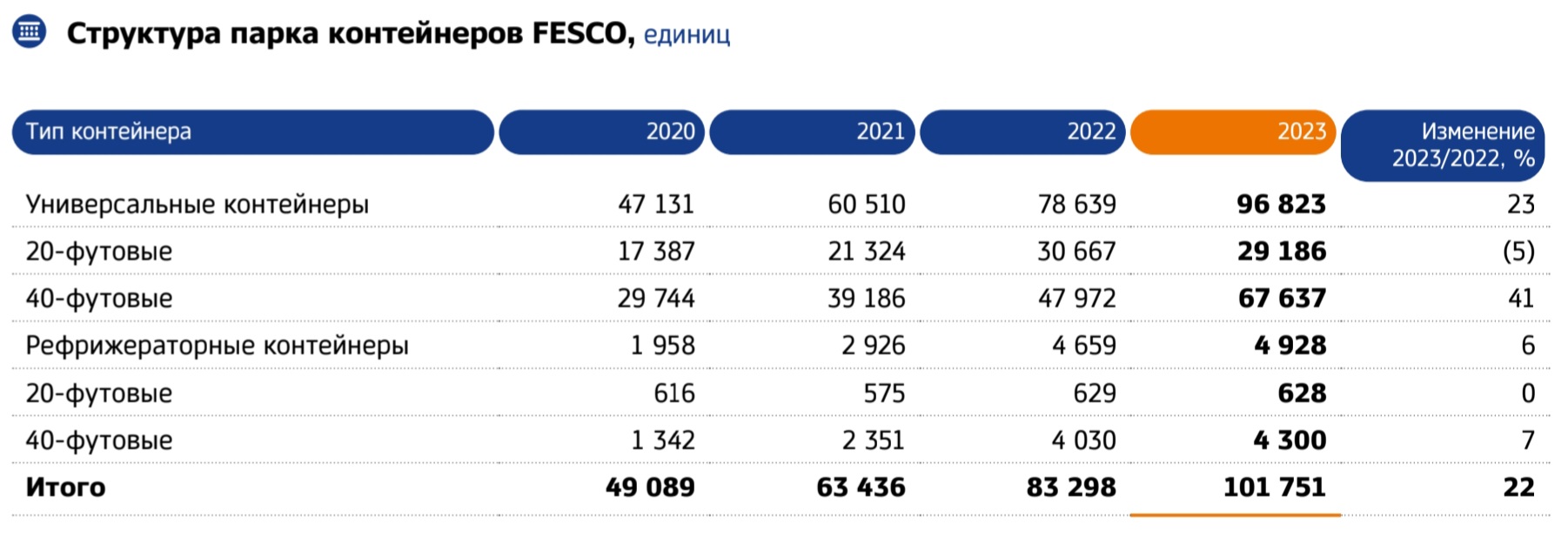 -- Существенно обновлен и двукратно увеличен контейнерный парк (с 49 тыс. до 101 тыс.; в 2024 г. - уже 118 тыс.)