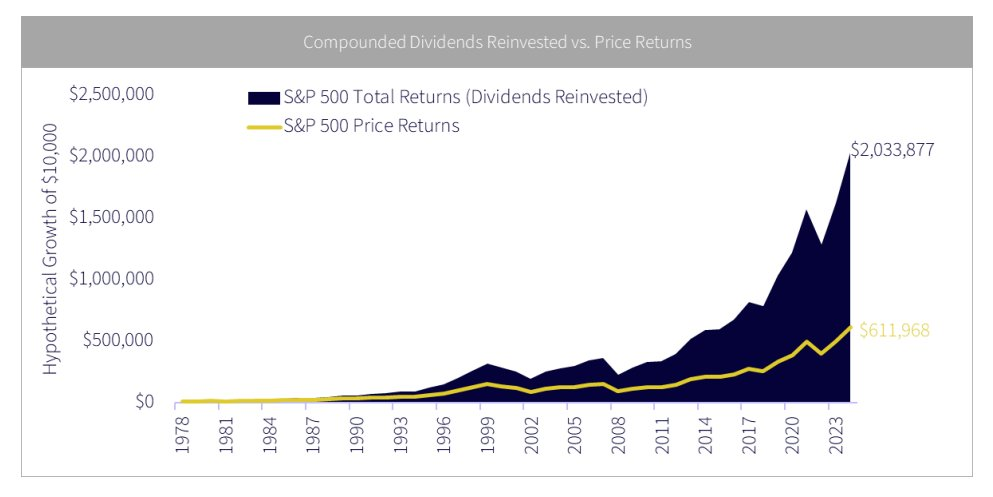 И вот говорят, что с 1978 года дивиденды и реинвестирование обеспечили 70% доходности фондового рынка США.