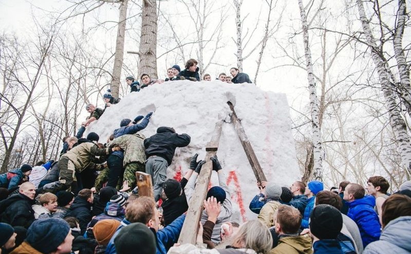 Близится Масленица. Перед Великим постом народ гуляет. От души, с задором, с боями! А с 17-го года всё .. всё это исчезло. По паркам остались: канаты, баранки, подушки на бревне, и прыжки в мешках под шашлыки. Вспомним, как было в Екатеринбурге ещё совсем недавно.