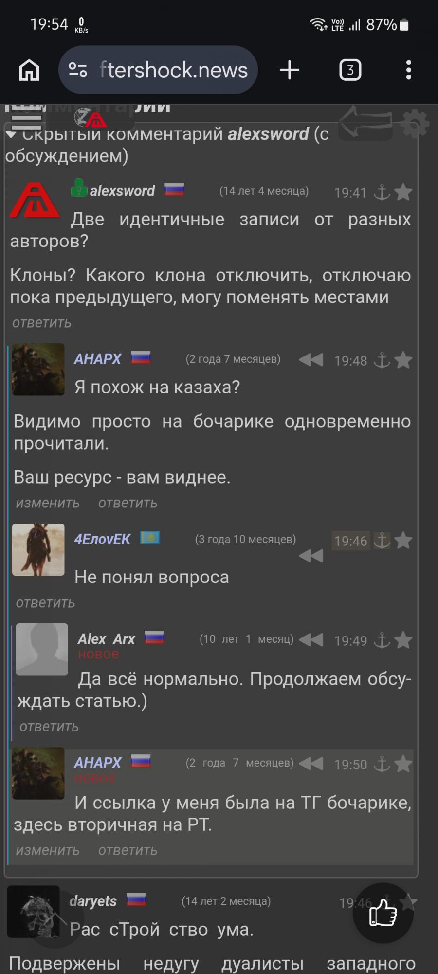 Что не так с форматированием моей записи? Текст не правлен. Предпросмотр ничего не показал. То есть снесён мой пост (не провокационный) был всё-таки не за клоновость? За минуту я вряд-ли бы успел перелогинется на казаха.