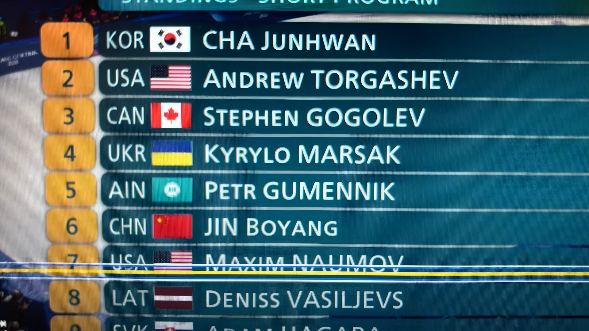 Зимняя Олимпиада-2026 без российской сборной выглядит примерно так — Американец Андрей Торгашев опережает канадца Степана Гоголева — Пётр Гуменник идёт пятым и преследует Кирилла Маршака; — Латыш Денис Васильев занимает восьмое место и почти догнал американца Максима Наумова