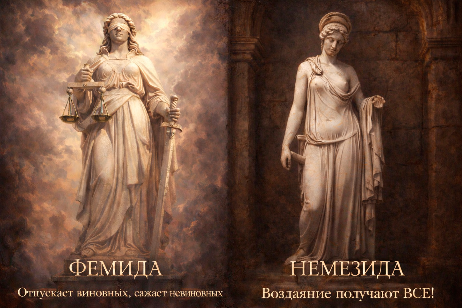 Фемида вообще сплошь и рядом поступает наоборот от Немезиды. Если между собой и согласны, то в примитивно уголовной сфере.