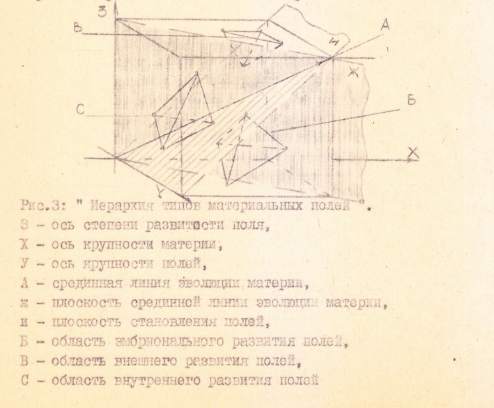 Почему-то тогда написал такую линейку: «элементарные частицы», «атомы», «молекулы», «клетки», «человек», «техника» и т.д. Понятно, что это уровни, каждый из которых развивался в свои макро-системы. Например, в архиве написаны такие ряды: "...«человек», «род», «племя», «нация», «цивилизация»… Или следующие структурные уровни организации живой материи: «клетка», «ткань», «орган», «организм», «популяция», «вид», «биогеоценоз», «биосфера»"