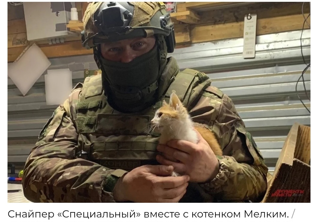 «Я был совсем ещё молодым пацаном, когда попал служить на срочную в железнодорожные войска. На дворе были 90-е годы, учебку проходили в Волгограде, оттуда, после саперных курсов, сразу отправились практически в самое пекло, на Северный Кавказ. Там сопровождали наши колонны бронетехники. Шли впереди и проверяли дорогу с миноискателями и щупами на мины, фугасы, растяжки. Оказавшись на передовой вновь, можно сказать на собственной шкуре ощутил, насколько сильно поменялись боевые действия», — говорит снайпер, поглаживая котёнка, который запрыгнул к нему на колени.