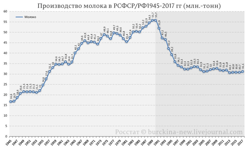 Молока стало ровно столько, сколько надо. Хотя, вероятно, отдельным альтернативно одарённым кажется, что 500 тонн молока на душу в год это хорошо. Но это не так, это дебилизм, ибо его цена устремляется к нулю.