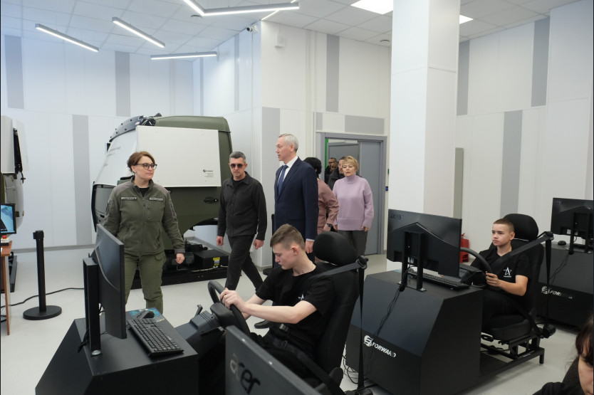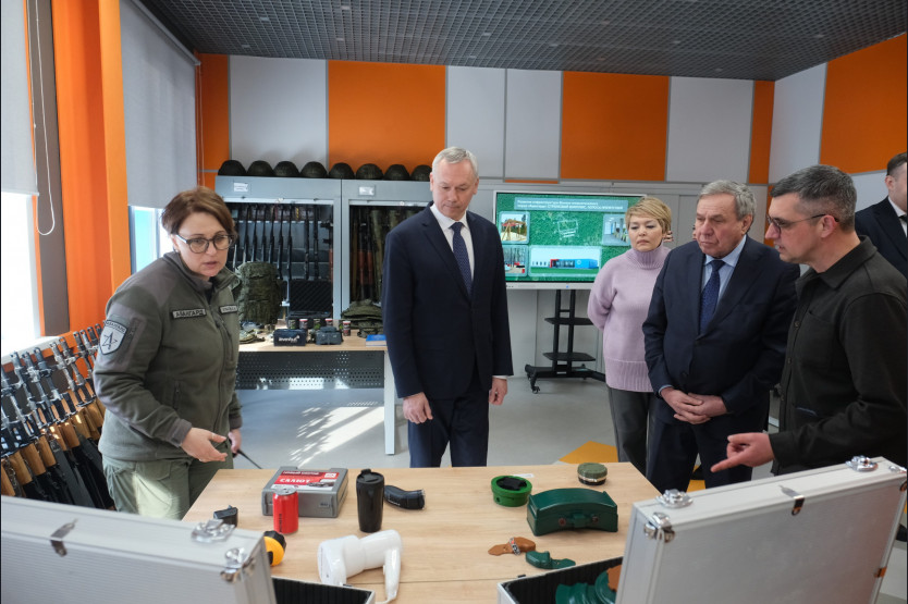 Андрей Травников осмотрел лаборатории автомобильной, воздушно-десантной, тактической, медицинской подготовки, морского дела, БПЛА, радиационной, биологической и химической защиты, авиационные и навигационные тренажеры.