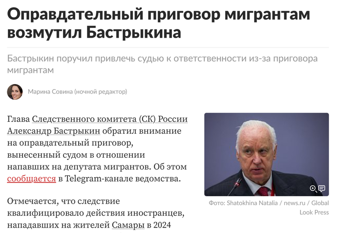 Чувство же безнаказанности у биомассы и отрядов террора появляется из-за возможности избежать наказания почти за любые преступления: можно насиловать местных (включая детей), грабить и убивать. Подразумевается, что член этнической ОПГ в случае чего сможет сбежать в свой аул (что часто и бывает) или диаспора подкупит полицейского, следователя, судью, прокурора - дело замнут. Один из самых вопиющих случаев недавнего времени - это когда целому депутату Госдумы РФ группа мигрантов раскроила голову, а водителю депутата сломали кости ключицы. До этого мигранты устроили дебош и напали ещё на несколько человек. Что в итоге? Суд вынес оправдательный приговор и отпустил трёх бандитов. Российский суд - самый гуманный суд на планете (по этому случаю Бастрыкин даже осмелился сделать выпад в сторону касты судей).