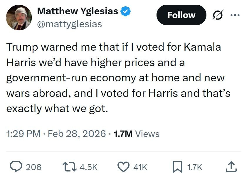 Трамп предупреждал, что если мы проголосуем за Камалу Харрис, то получим повышение цен, госрегулирование экономики и новые войны. Я проголосовал за Камалу и все это получил!