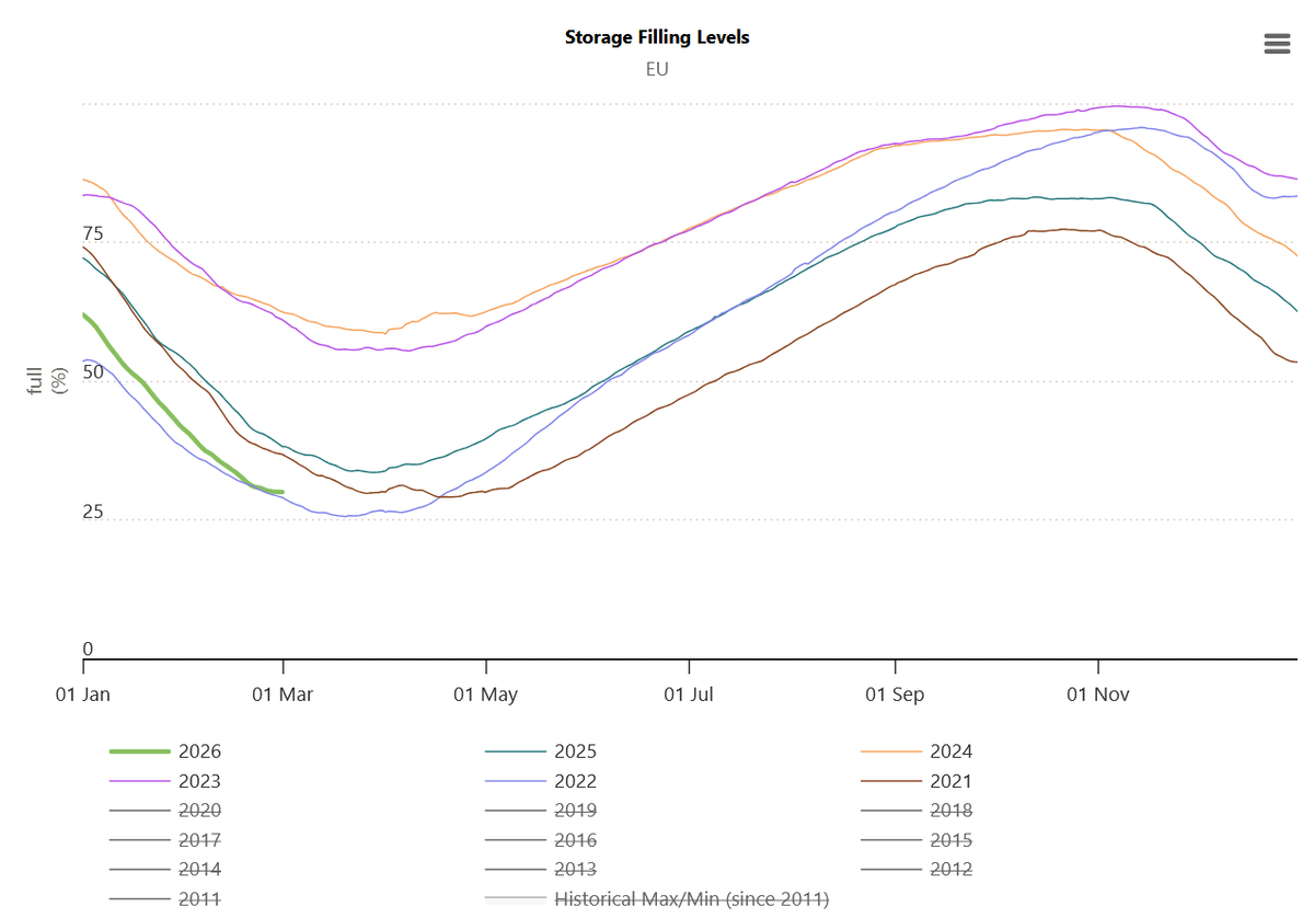 Кстати, самое время начинать заполнять газовые хранилища Европы, ибо упали до 29,98%. Да и целом цикличность обязывает. Просто с ценами добротно получается. А европейцы ведь не дураки заключать многолетние контракты с фиксом.