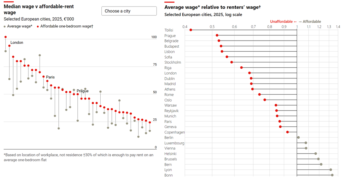 Используя последние данные о ставках арендной платы за квартиры с одной спальней, составленные статистическим агентством Европейской комиссии Eurostat, было подсчитано, сколько арендаторам нужно было бы зарабатывать, чтобы тратить не более 30% своего дохода на среднюю арендную плату по городу, что является типичным эмпирическим правилом для определения доступности жилья. Далее следовало сравнение со средней заработной платой (рассчитана Институтом экономических исследований ERI).