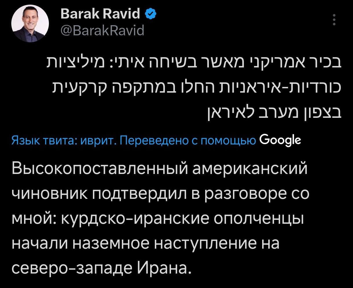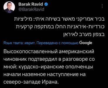 Сначала израильские СМИ, а потом и американские сообщили о том, что курдские отряды начали наступление на Иране.