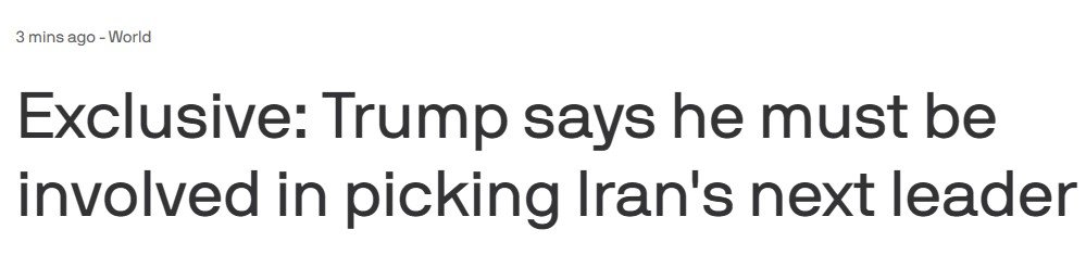 В интервью изданию Axios в четверг президент Трамп заявил, что ему необходимо лично участвовать в выборе следующего лидера Ирана — так же, как он это делал в Венесуэле.