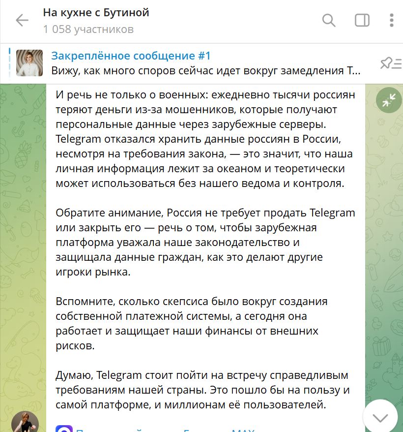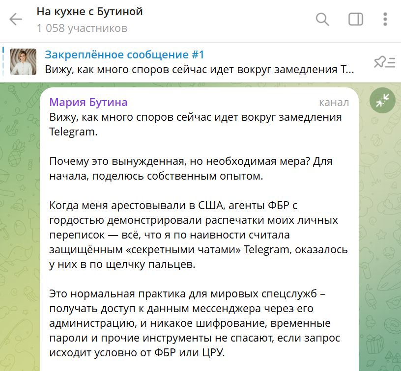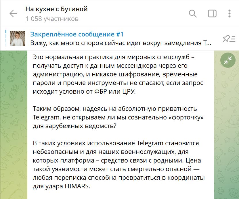 Бутина прямо пишет на своём примере о том, что нет в Тг секретности, а также предупреждает и предлагает. Ну просто предельно ясно.