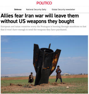 Европейские страны, испытывающие трудности с восстановлением арсеналов после отправки оружия Украине, опасаются, что не смогут отразить российское нападение. Союзники в Азии, потрясенные высокой огневой мощью Америки, задаются вопросом, не может ли это подтолкнуть Китай и Северную Корею к действиям. И даже на Ближнем Востоке страны не уверены, получат ли они от США средства противовоздушной обороны для решения будущих приоритетных задач.