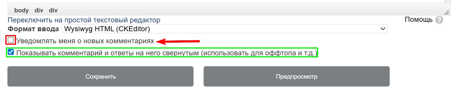 Если опция включена, то около каждого комментария появляется кнопка "пожаловаться".