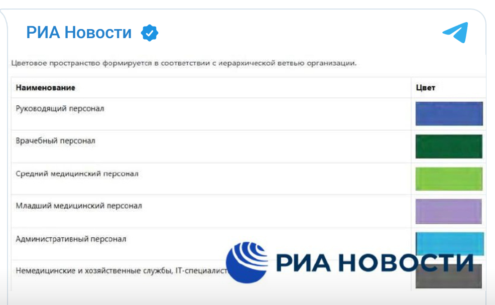 Уточняется, что цветовая гамма одежды медработников формируется в соответствии с иерархической ветвью организации.